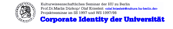 ![]() Die Studenten Sabine Lerch, Holger Lindner, Henrik Pantle, Kerstin Renhak, Sammi Sandawi, Petra Langheinrich, Peter Scherzer, Christine Teichmann, Franziska Wolff wurden im o.g. zweisemestrigen Projekt betreut von Prof. Dr. Marlis Dürkop und Olaf Kriseleit |